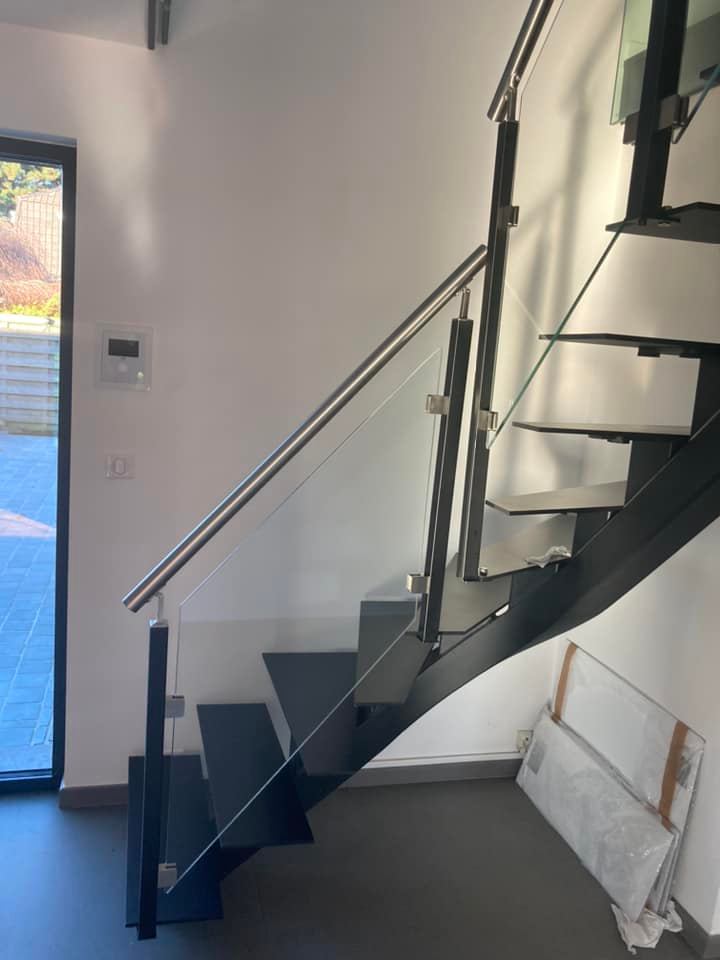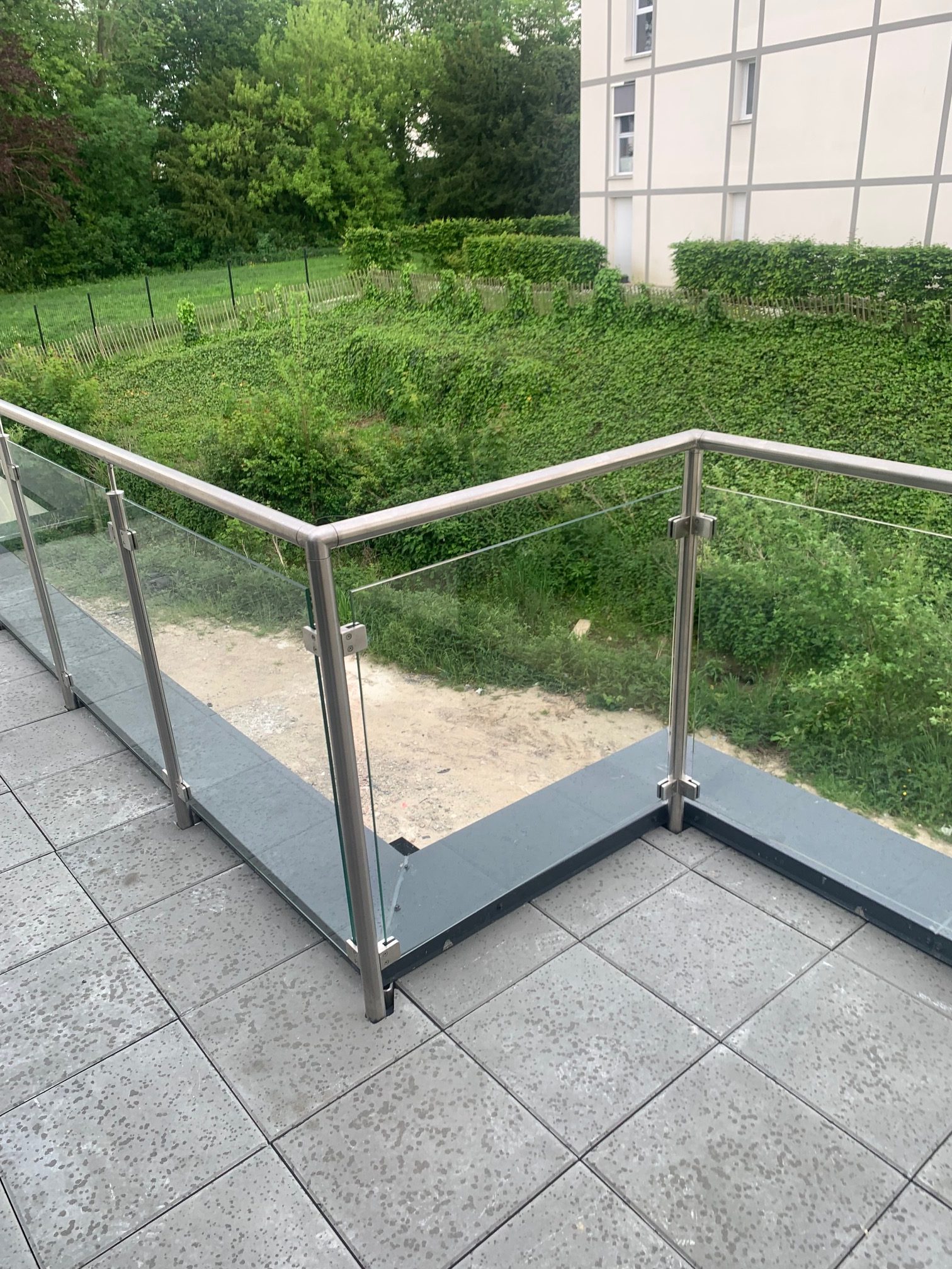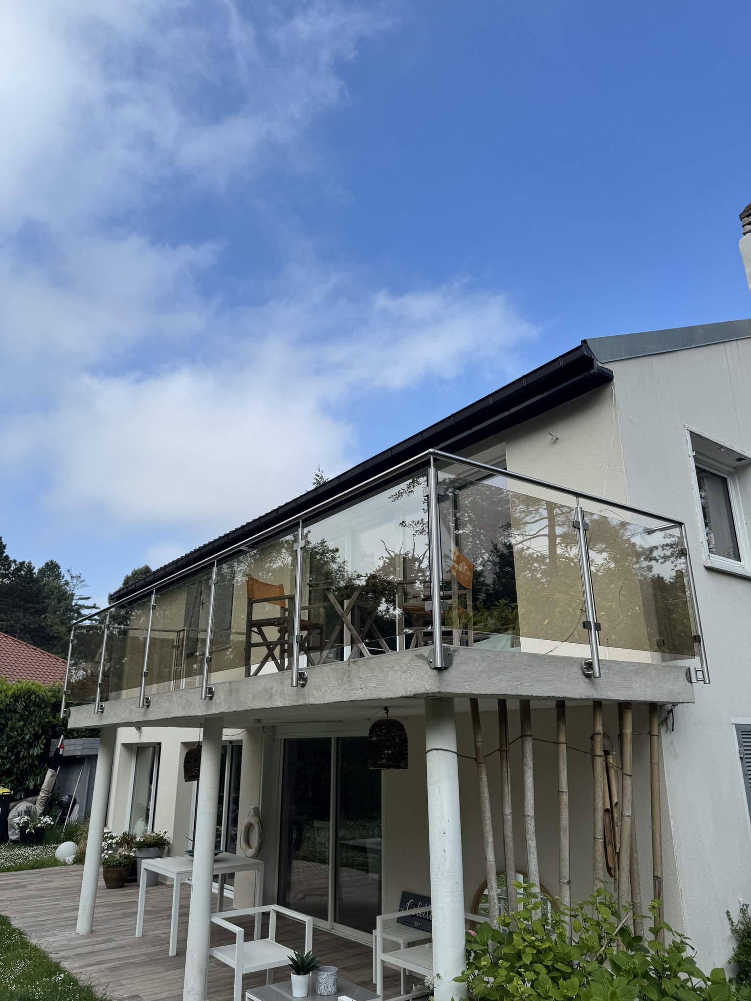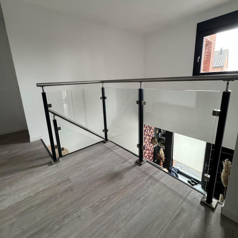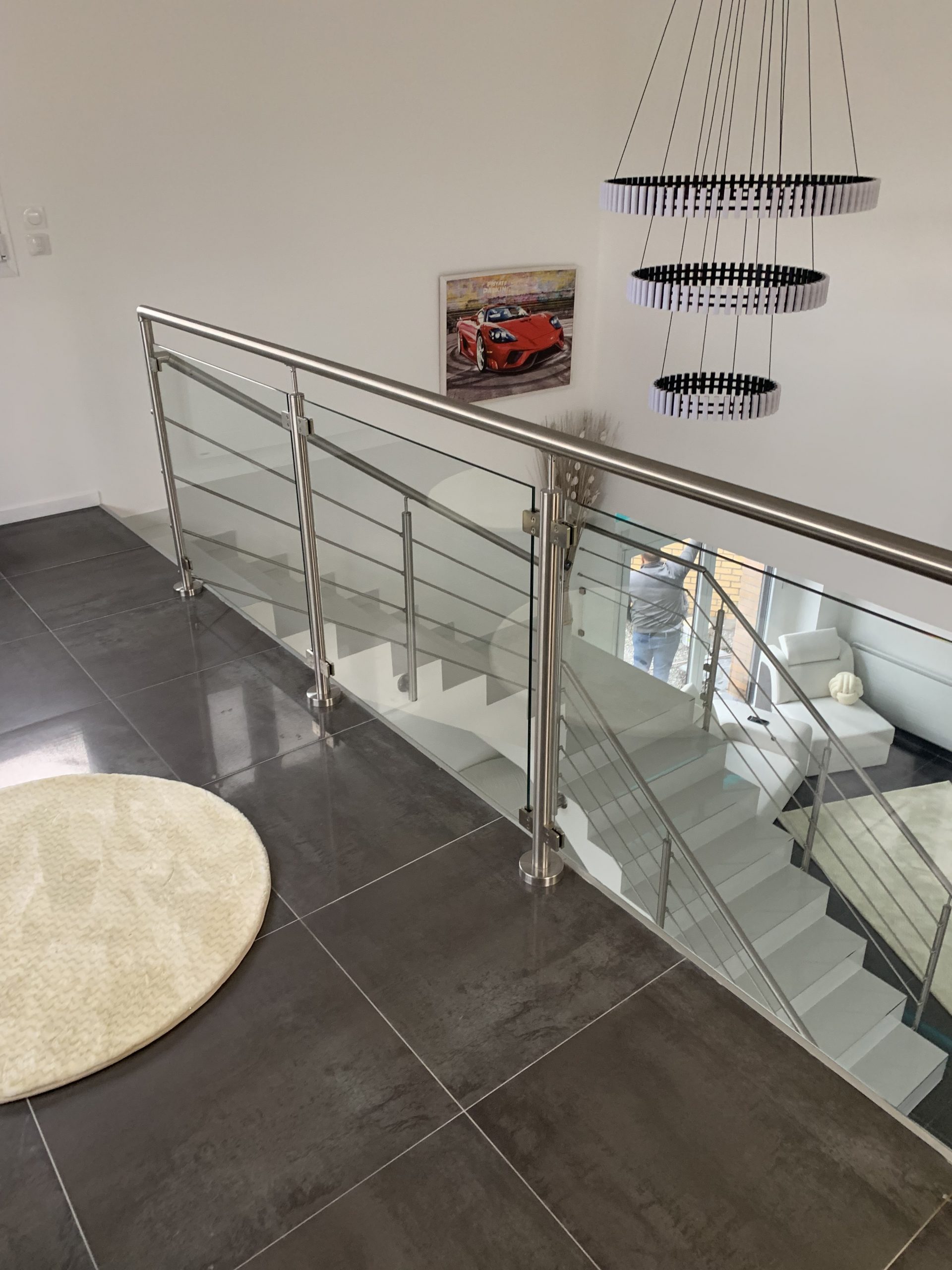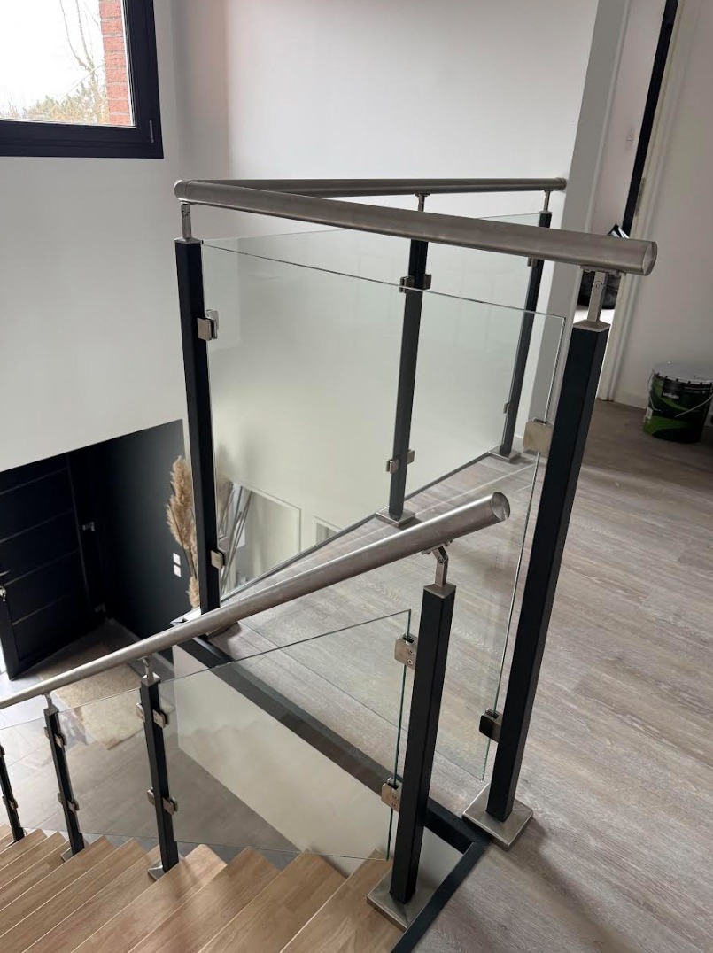 Nos garde-corps sur mesure peuvent être réalisés avec du verre clair ou fumé, fixé par des poteaux en inox brossé avec main courante assortie. Selon vos envies, ajoutez 1 ou 2 barreaux pour plus de style ou de sécurité. Possibilité de poteaux laqués dans la couleur de votre choix. Élégance, solidité et personnalisation.