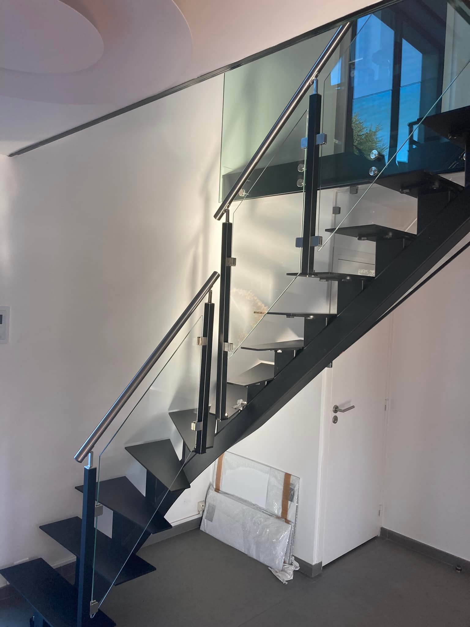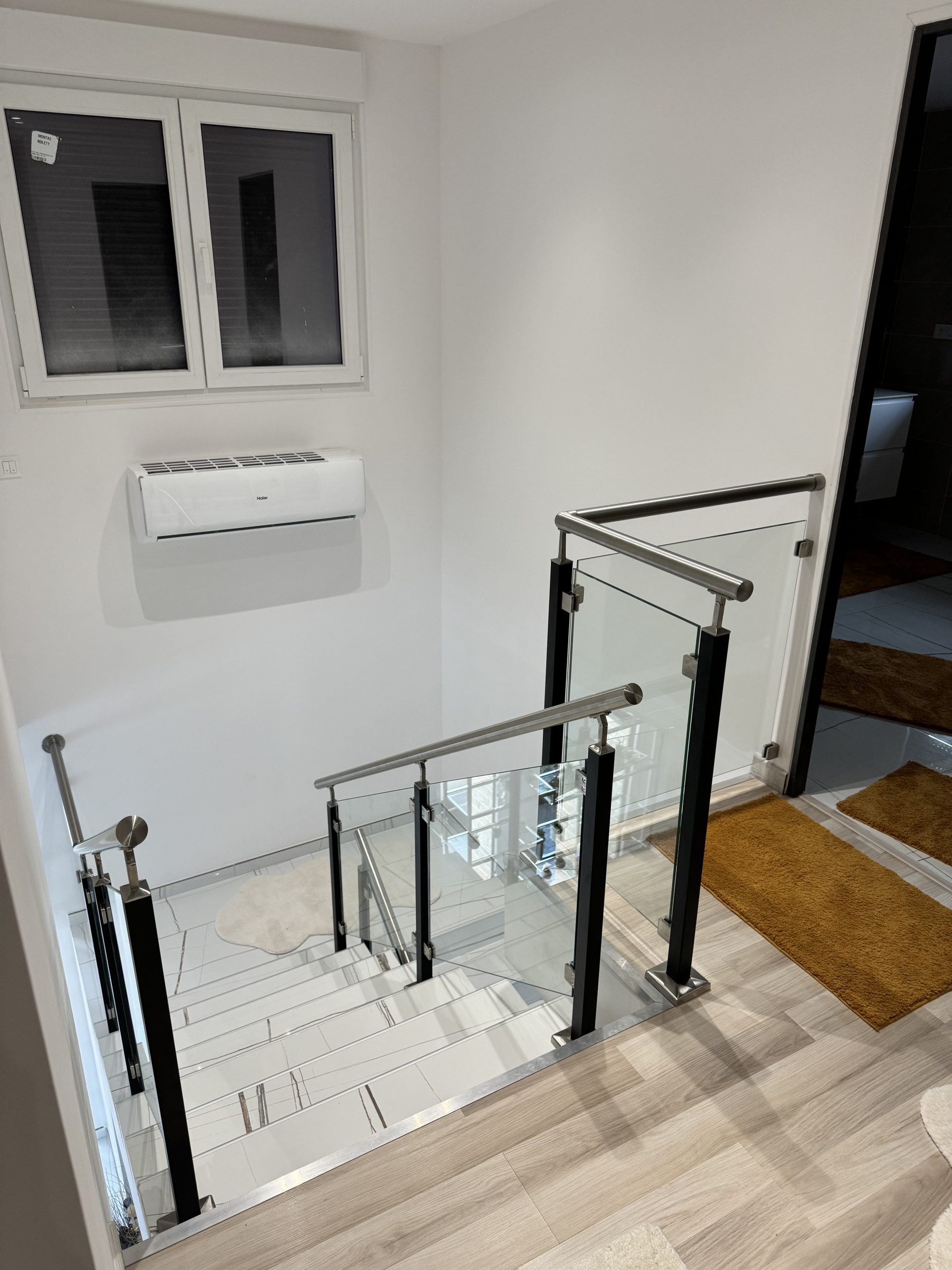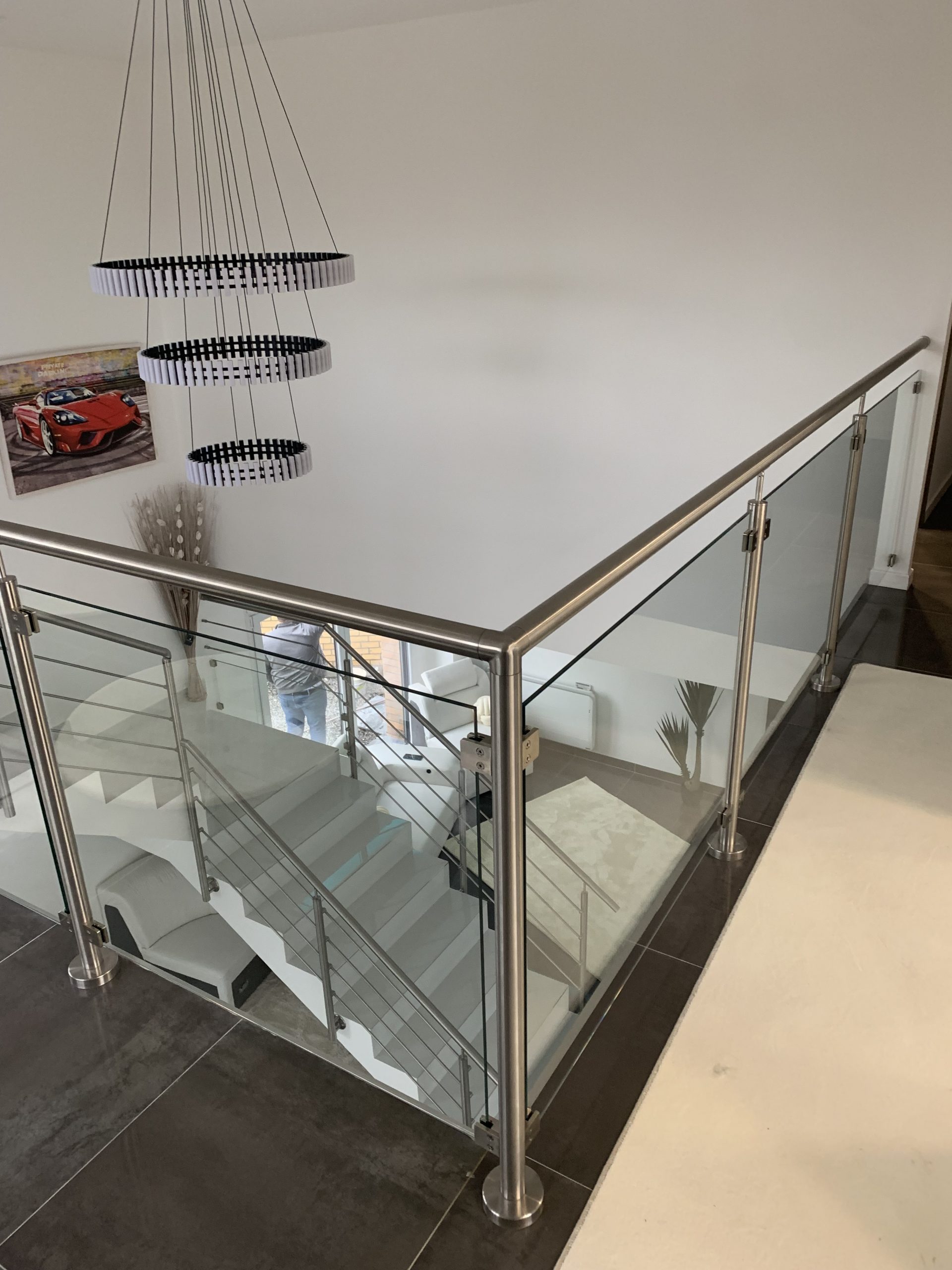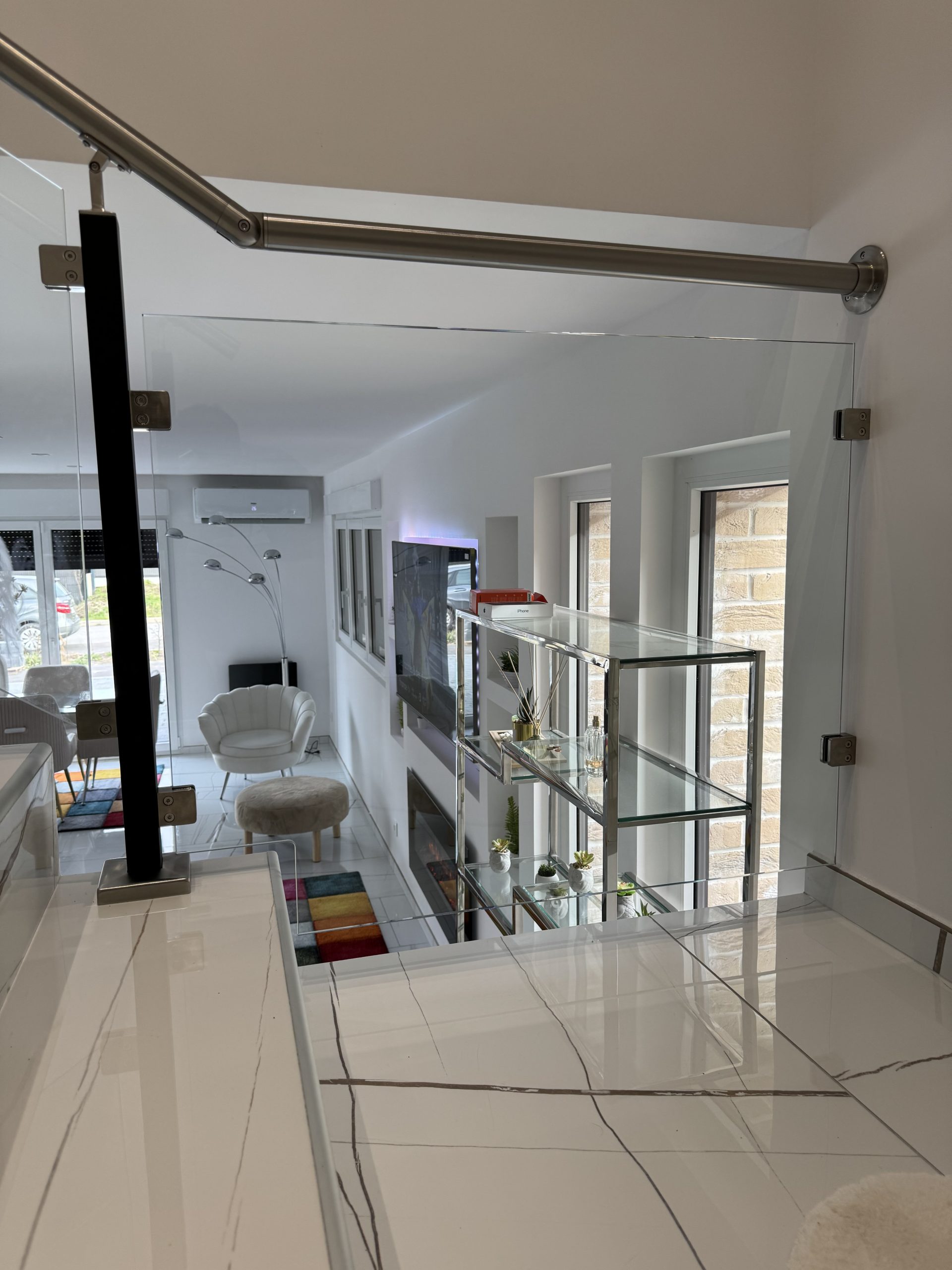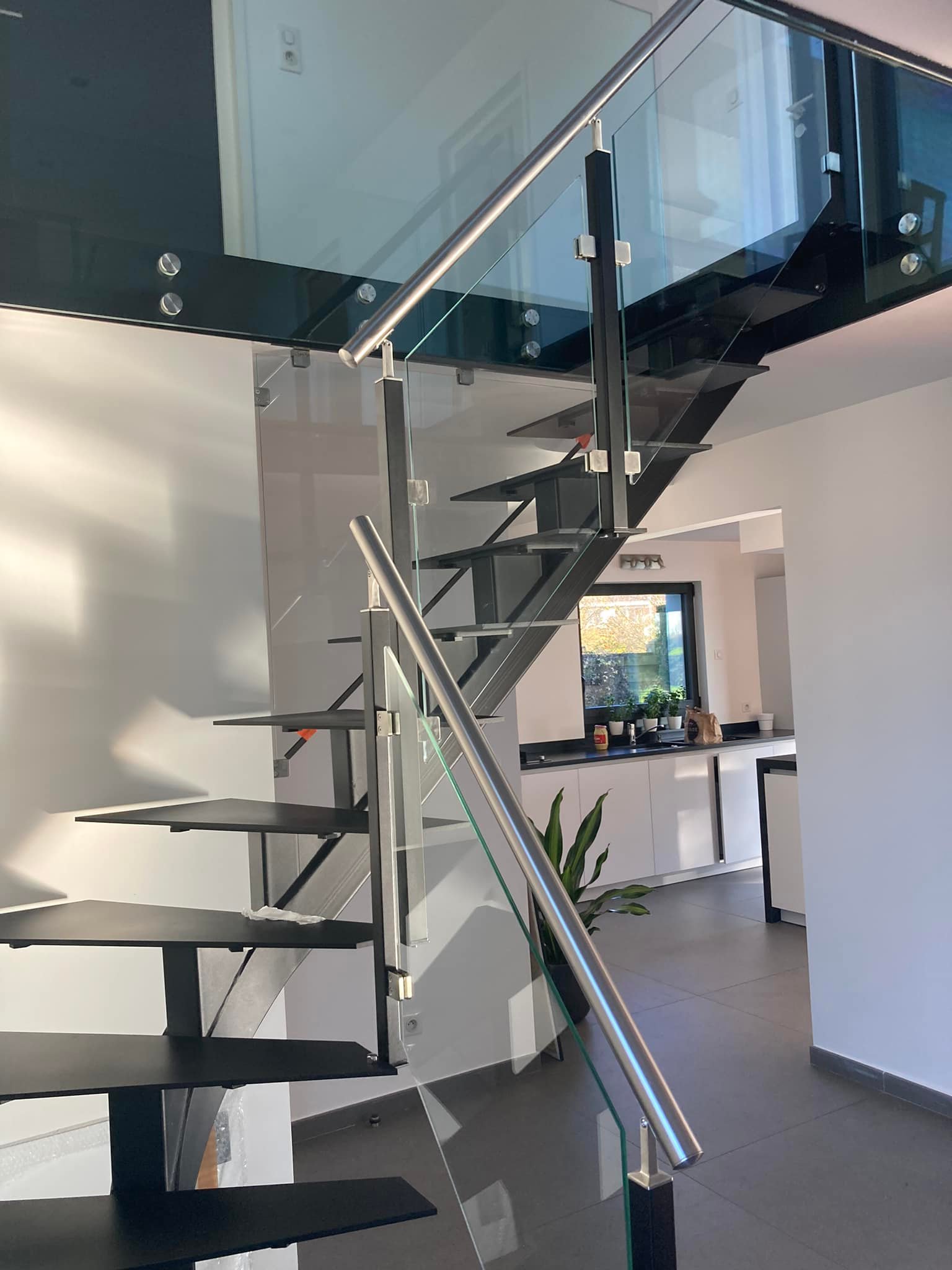 Nos garde-corps sur mesure peuvent être réalisés avec du verre clair ou fumé, fixé par des poteaux en inox brossé avec main courante assortie. Selon vos envies, ajoutez 1 ou 2 barreaux pour plus de style ou de sécurité. Possibilité de poteaux laqués dans la couleur de votre choix. Élégance, solidité et personnalisation.