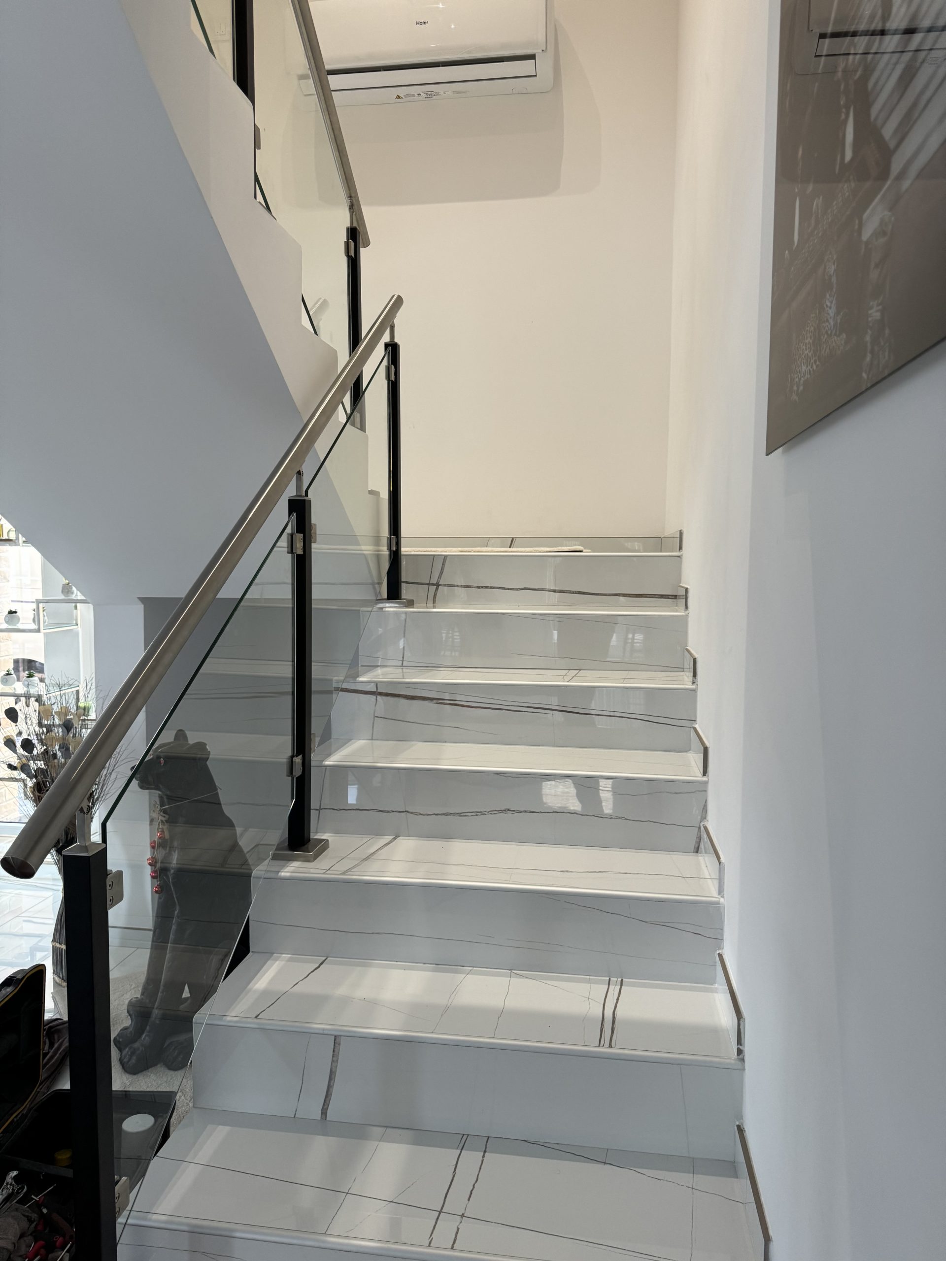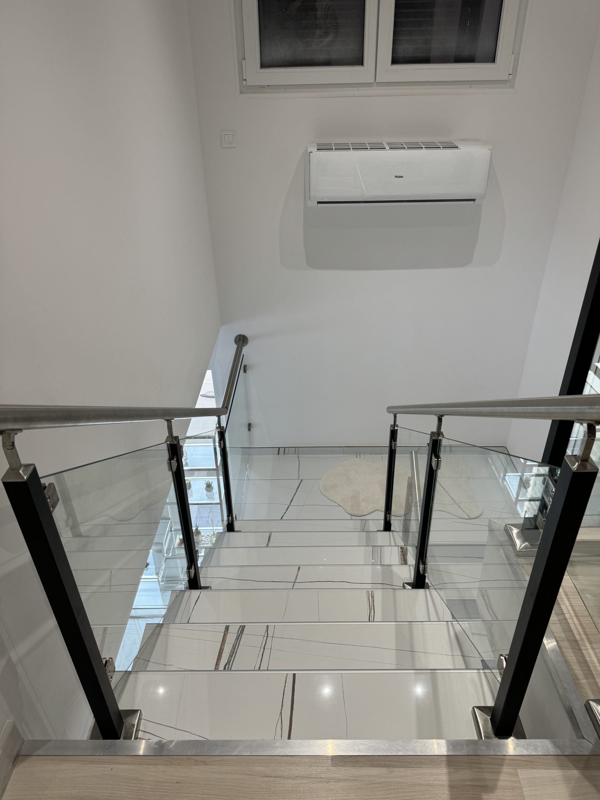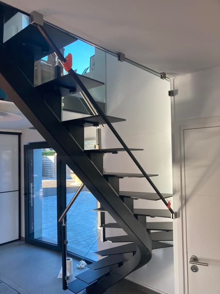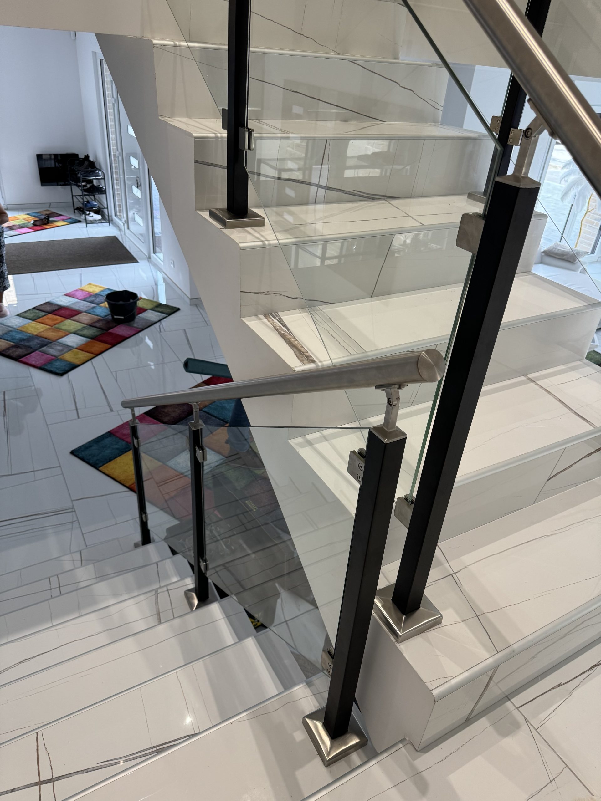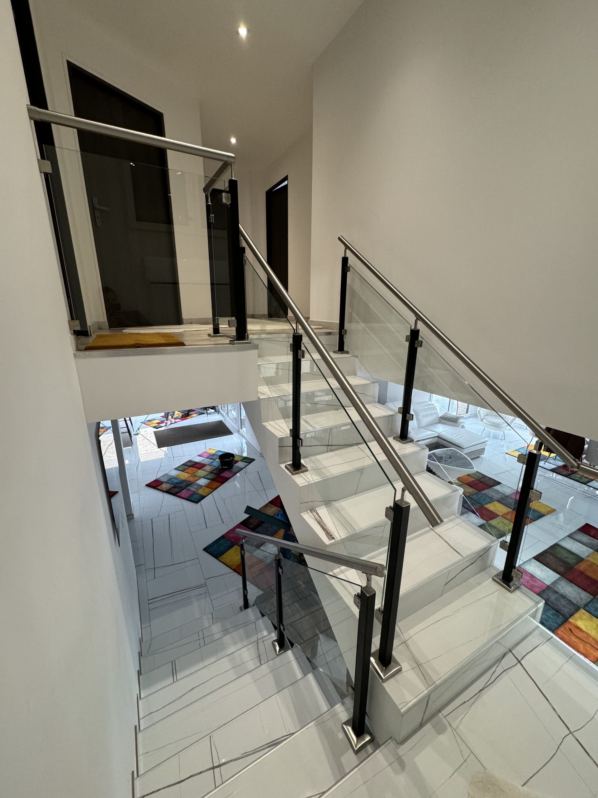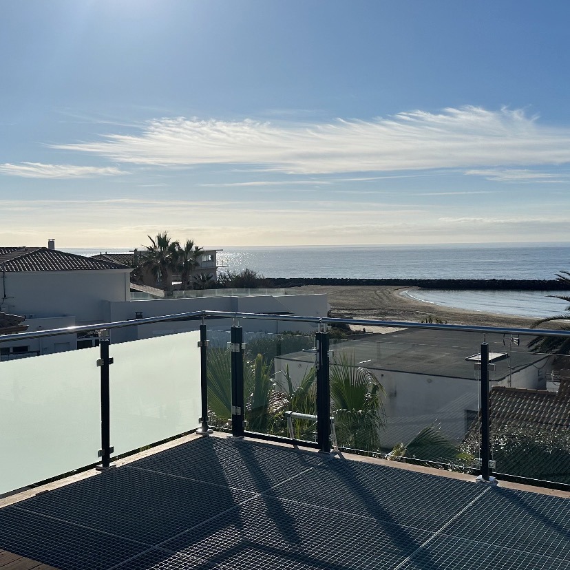 Nos garde-corps sur mesure peuvent être réalisés avec du verre clair ou fumé, fixé par des poteaux en inox brossé avec main courante assortie. Selon vos envies, ajoutez 1 ou 2 barreaux pour plus de style ou de sécurité. Possibilité de poteaux laqués dans la couleur de votre choix. Élégance, solidité et personnalisation.