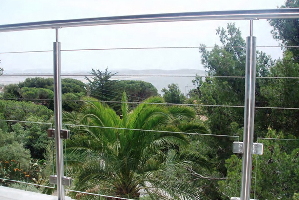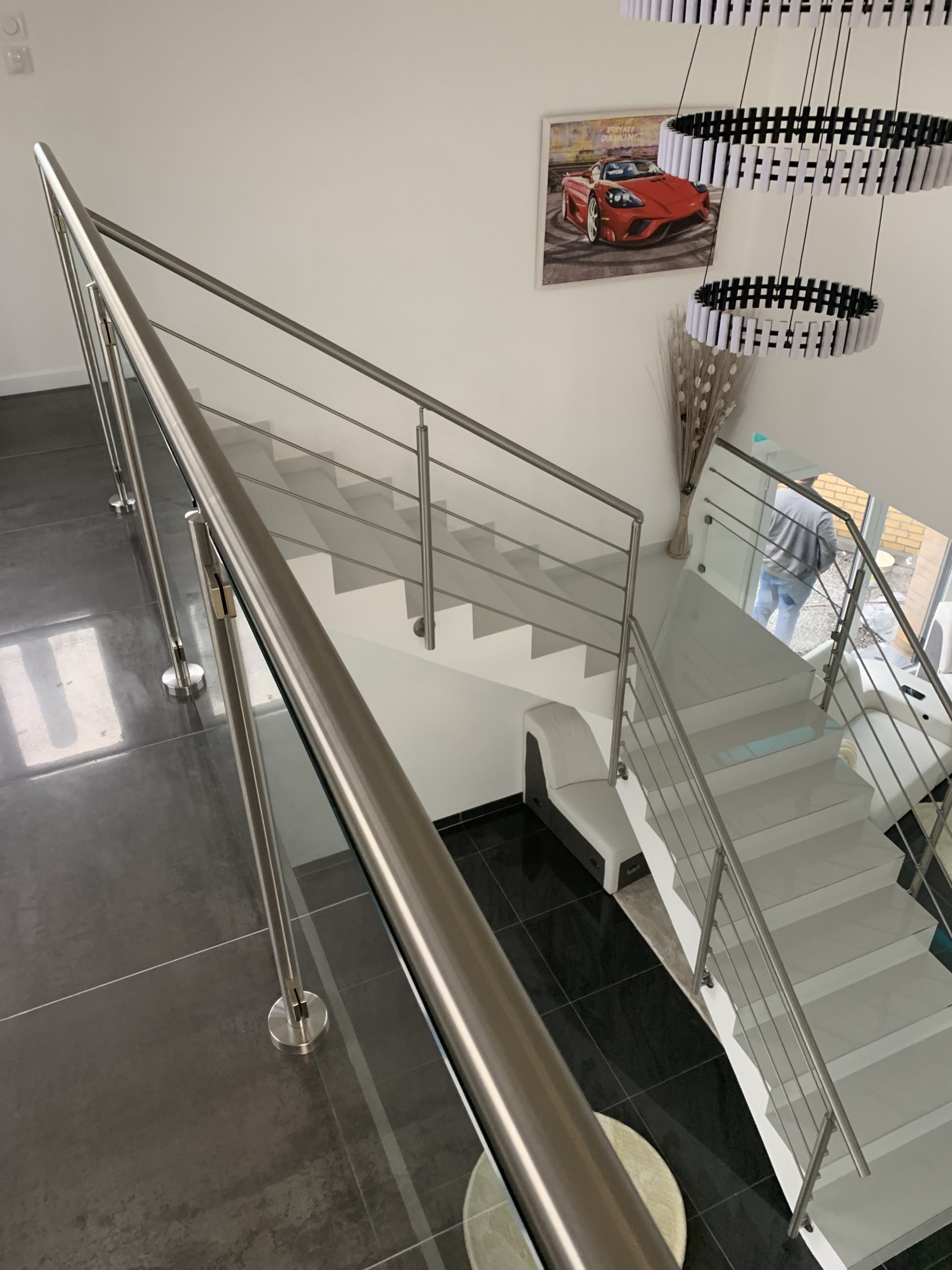 Le garde-corps à câbles offre un design moderne, épuré et aéré, idéal pour préserver la vue tout en assurant la sécurité. Réalisé en inox, il peut être associé à d’autres matériaux pour un rendu personnalisé : verre clair ou fumé, lisses inox, ou barreaux verticaux. Ce type de garde-corps s’adapte aussi bien aux espaces intérieurs qu’extérieurs, et convient parfaitement aux terrasses, balcons ou escaliers. Esthétique, modulable et durable, il s’intègre harmonieusement à tous les styles d’architecture.